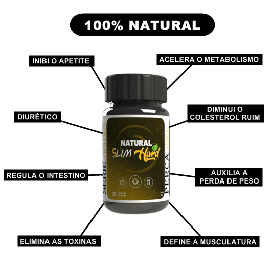 O emagrecedor NATURAL SLIM HARD, visa no emagrecimento de forma rápida, eficaz e saudável por ser 100% natural!